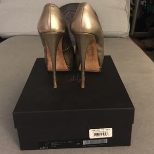 Giuseppe Zanotti Gorgeous Gold Metallic Peep Toe Pumps .. have a few scuff marks but only worn a few time.. Size 40 which will fit 8.5 9