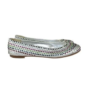 Giuseppe Zanotti Metallic Silver Flats Multicolor Beaded Leather Shoes Women’s