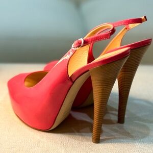 New! Never worn Giuseppe Zanotti ‘Monro’ hot pink/ bright candy pink patent leather peptone slingback stilettos. Perfect, new condition! Only tried on carpet.