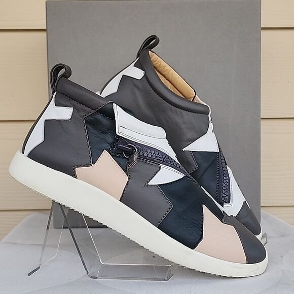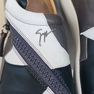 Giuseppe Zanotti Multicolor Leather Flat Side Zipper Sneakers Booties High Tops US 10, in excellent condition.