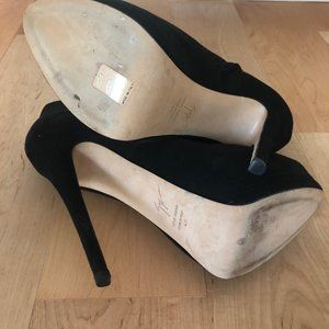 Giuseppe Zanotti Black Suede Ankle Length Peep Toe Platform Booties Size 40.