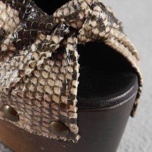 Giuseppe Zanotti Peep Toe Snakeskin Studded Wood Platform Mules