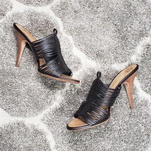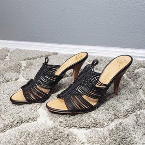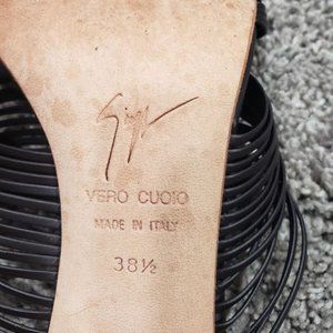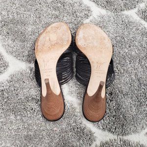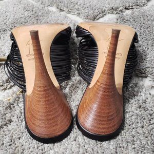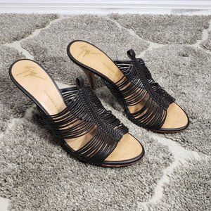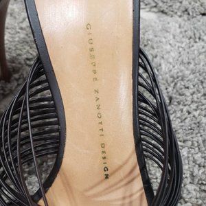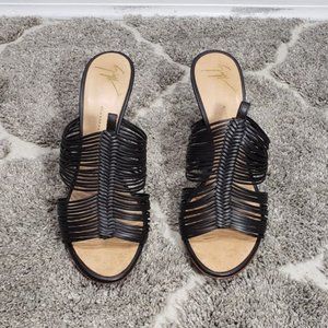 Giuseppe Zanotti Pissi Black Leather Sandal Heels, Size 38.5, U.S 8.5