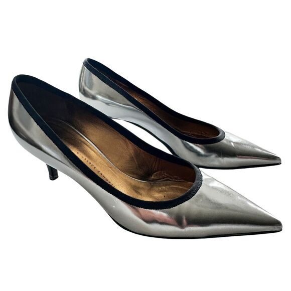 Giuseppe Zanotti Pointed Kitten Heel Metallic Iridescent silver size 38 US 8