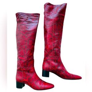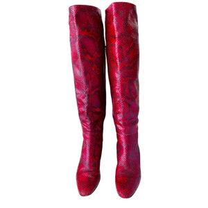 Giuseppe Zanotti Python Snake Leather Burgundy Tall Knee High Boots Women’s 39.5