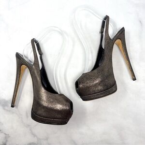 Giuseppe Zanotti Sharon Platform Slingback Sandal Pump Heels Metallic Leather 36