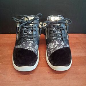 Only worn a few times. They are in great condition. Black with Gray Rose motif. White grooved soles.