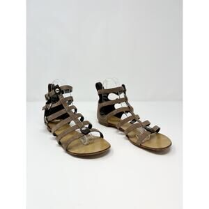 Giuseppe Zanotti Short Ankle Strappy Gladiator Flat Cage Sandals Taupe Tan EU 37