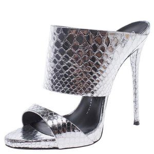 Giuseppe Zanotti Silver Snake-Embossed Sandals