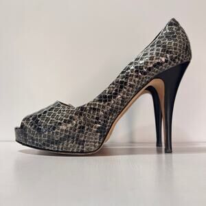Tags: snake print, leather, peeptoe, pumps, high heels, platform, embossed
