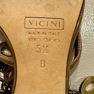 Color: Metallic gold leather with brown leather footbed and multi-stone jeweled chain detail across the vamp and up the ankle.