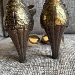 Giuseppe Zanotti Vicini Vero Cuoio Gold Bronze Leather Heels 9 Sz 40