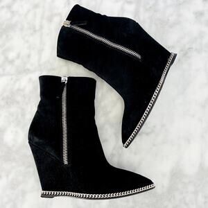 Giuseppe Zanotti Wedge Point Toe Ankle Boot Black Suede 39.5 Chain Detail w/box