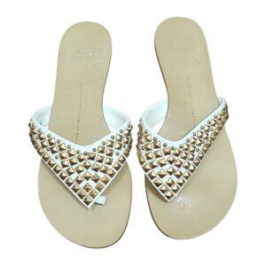 Giuseppe Zanotti White Leather Studded Sandals Women’s Size 36 Vero Cuoio Made in Italy Flats( boots 1) Elevate your summer style with these stunning Giuseppe Zanotti studded leather sandals. Crafted in Italy from premium white leather with gold-tone pyramid studs, they add instant luxury to any warm-weather outfit. Comfortable, chic, and unmistakably designer — perfect for vacations, weekends, and effortless glam moments. Gently worn with visible wear on soles, but the upper looks beautiful and ready to shine again  Size: 36 EU/6 US Color: White  Material: Leather  * Indoor/outdoor wear  The wearing photo is borrowed from the store. It’s in a different color, but it can serve as a reference for the silhouette. Color in photos may slightly differ from actual item due to lighting and/or screen setting Excellent pre-owned condition . As shown in photos. Reasonable offers are welcome! Any questions/concerns please state in direct messages. #GiuseppeZanotti #ZanottiSandals #DesignerSandals #StuddedSandals #ItalianLeather #VeroCuoio #SummerStyle #ResortWear #LuxuryFootwear #WhiteSandals #GlamStyle #GoldStuds #FashionFinds Giuseppe Zanotti sandals, Zanotti flats, studded leather sandals, white leather sandals, women’s size 36, Italian sandals, Vero Cuoio, designer shoes, luxury sandals, summer flats, gold stud sandals, slip-on sandals, Made in Italy footwear