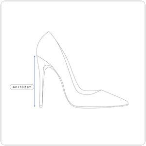Elegant black suede heels with a sparkling rhinestone curved accent. Features pointed toes, padded insoles, and a 4" stiletto heel for a classic, refined look.