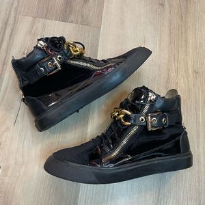 Giuseppe Zanotti Women’s Black/Gold Single Gold Bar High Top Size 37 EU 7 US