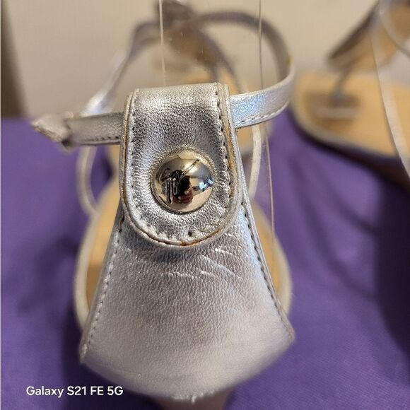 -Metallic silver leather covered heel with silver Zanotti medallion on back