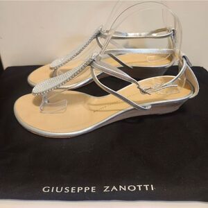 Giuseppe Zanotti Silver Leather w/Swarovski Crystal Thong Sandals
