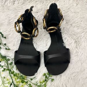 Giuseppe Zanotti Black Leather Gold Ring Ankle Strap OpenToe Sandals 36.5/6.5 US