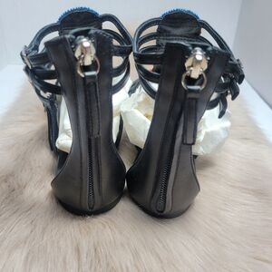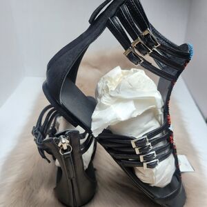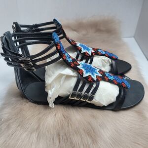 Giuseppe Zanotti for BALMAIN black blue BEADED Tstrap gladiator shoes Size 8.5 Great Condition See Pictures For More Details.