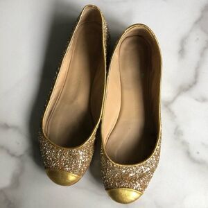 Giuseppe Zanotti Gold Glitter Malika Cap Toe Flats with Box