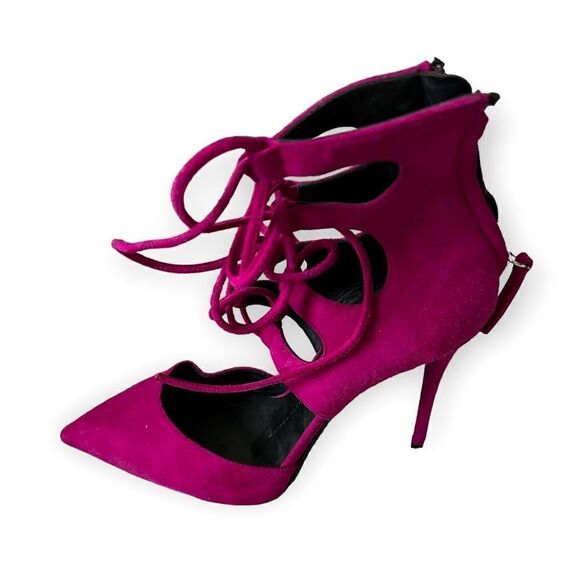 Suede Lace-Up Pump, Fuchsia