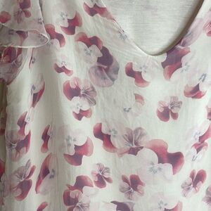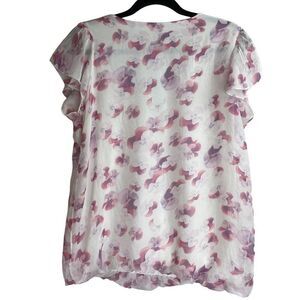 Giusy Italy 100% Silk Floral Fluttered Sleeve Chiffon Overlay Blouse Size M