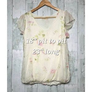 Giusy Italy 100% Silk V-Neck Flutter Sleeve Ethereal Floral Fairycore Top Sz. S