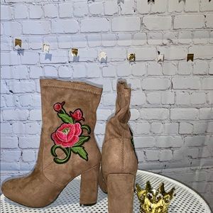 Beautiful Taupe Floral Booties
