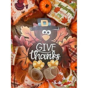 Give Thanks Thanksgiving Turkey Wreath – Fall Harvest Front Door Decor