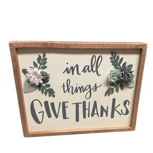 Give Thanks Motivational Sign Thanksgiving Christmas Holiday Decor Wall Art NWT