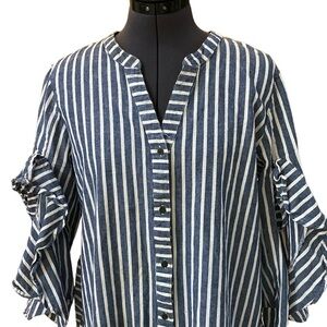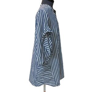 Given Kale Dress Size M Cotton Blue/White Print Button Down V-Neck Tunic Stripe