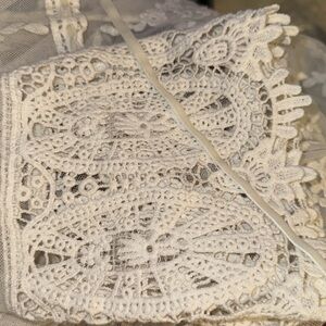 Given Kale ivory crochet mesh fringe buttoned down sheer bell sleeves too Sz L