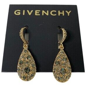 Givenchi Crystal Scattered Pave Tear Drop Earrings Gold Tone French Wire Closure
