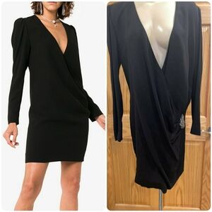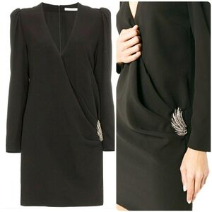 This black Givenchy Silk wrap dress is the result of Italian design, handcrafted with silk, features a deep v neckline, long sleeves, wrap over front, back concealed zip fastening and crystal embellishment. We know you will be wrapped up in this one, as your signature lewk is so noir, like Shelby Carpenter, who once said, "I can afford to blemish my character, but not my clothes." Wear your Givenchy Silk wrap dress to keep your reputation for blackest black intact.
