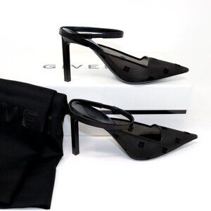Givenchy 37 + Box Show 4G Strap 95 Mesh Mule Slingback Logo Embroidered Heels