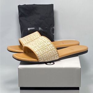 Crafted from woven cotton covered with Givenchy’s signature geometric logo, these sleek flat sandals have a refined look.