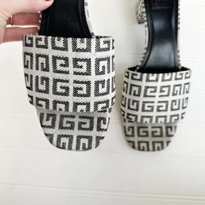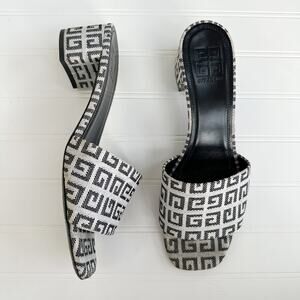 Givenchy 4G Monogram Canvas Slide Mules Black Gray Block Heel Sandals 40