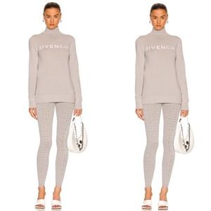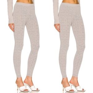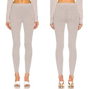These luxe Givenchy leggings feature the iconic 4G monogram lace knit design in a semi-sheer stretch fabric. Crafted in a soft gray colorway, they sit high on the waist and hug your curves with a smooth, sculpted fit. Ribbed elastic waistband offers comfort and shape retention. Designed for both casual and elevated styling. Made in the UK. Size XS.