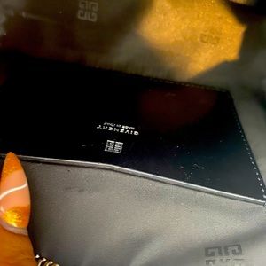 One of kind all black Authentic Givenchy with sliver g detailed chain. Pre loved for less than a year. Can be transformed from cross body to evening clutch.