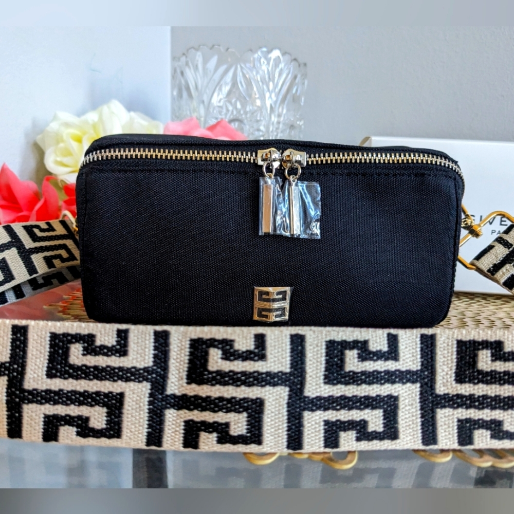 brand new givenchy pouch made exclusively for givenchy perfume collection converted into shoulder bag or cross body with non branded strap.
