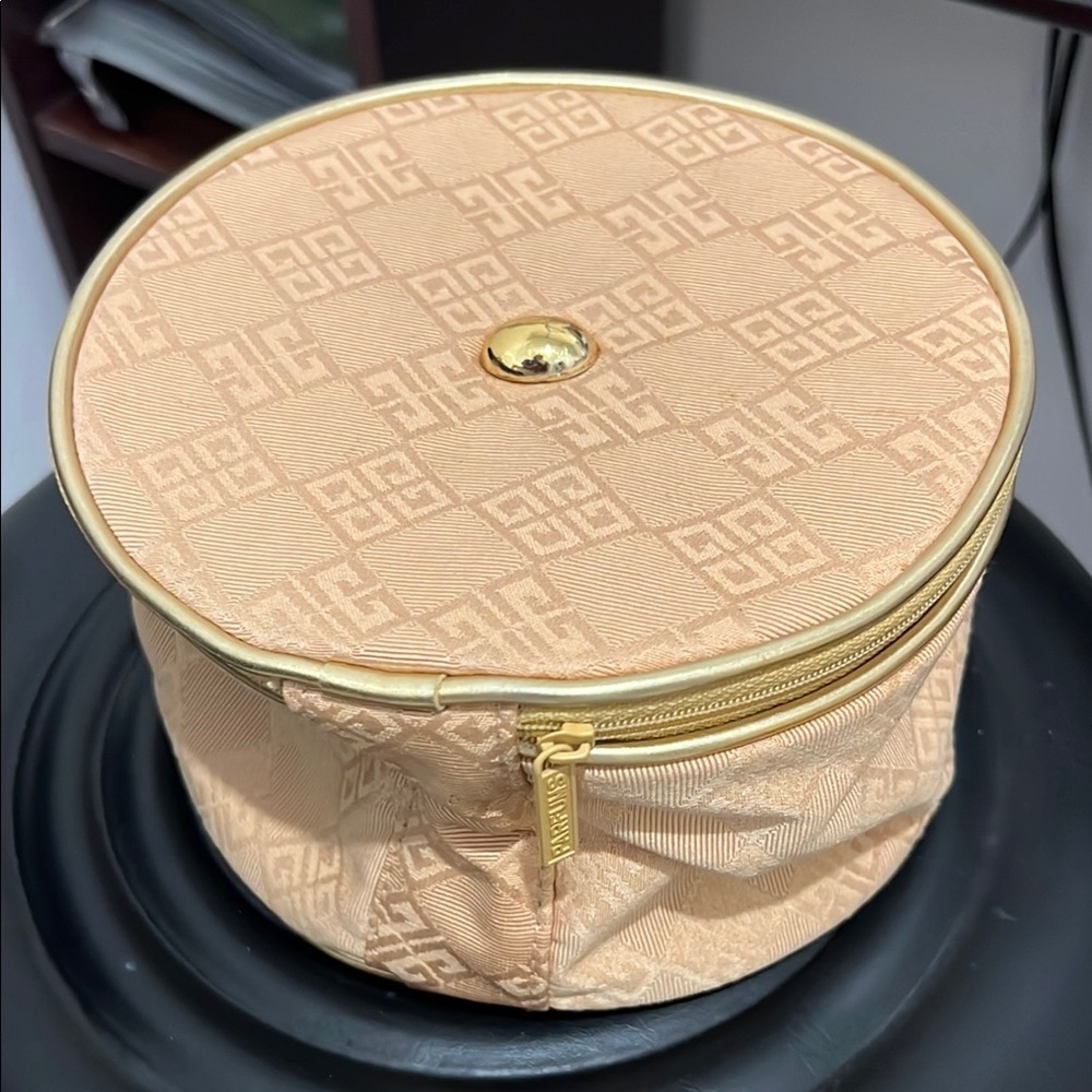 Vintage Givenchy Organza Parfums Cosmetic Cylinder Toiletry Travel Bag, see pictures for details & dimensions.