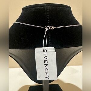 This exquisite Givenchy necklace showcases a striking silver mandala pendant adorned with a captivating purple accent. The intricate design and polished finish make it a sophisticated statement piece, perfect for elevating any ensemble. New with tags does not have the box. Beautiful piece.