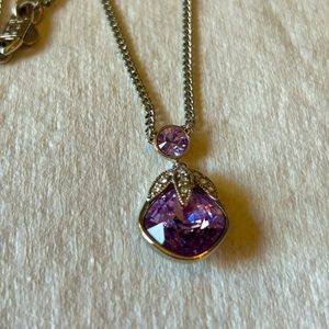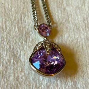 Gorgeous Givenchy Amethyst crystals, silver tone with a 16” chain. Pendant is 1” in length and 2/3” in width. NWOT