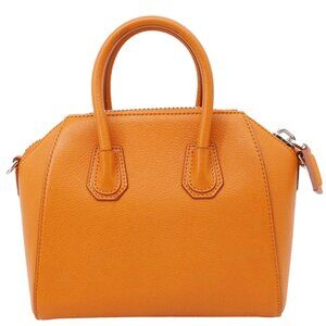 The Givenchy Antigona Mini comes in sugar goatskin leather with a vibrant orange finish. Its structured silhouette and crossbody style add elegance with everyday practicality.