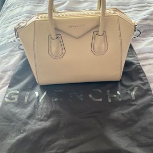 Size small givenchy Antigona gray bag with shoulder strap. Comes with dust bag, receipt, tags. Never used, and only taken out of the dust bag for the pictures for this listing. 100% authentic, it was purchased at Nordstrom. Sugar leather in gray.