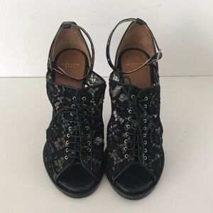Givenchy Black Floral Lace Open Toe Lace Up Bootie Sandals, Size 6.5 🔴