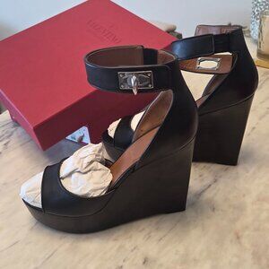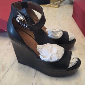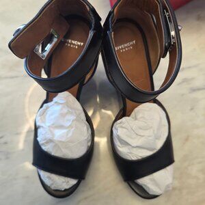 Making space for the summer! Selling Givenchy Black Leather Shark Tooth Ankle Strap Open Toe Platform Sandals Size 39.