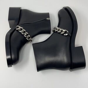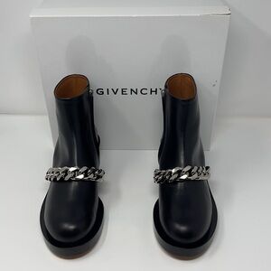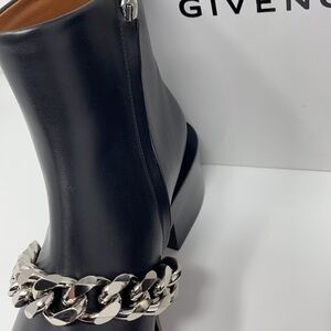 Givenchy Black Leather Silver Chain Ankle Boots NIB