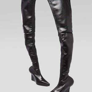 Givenchy Black Leather Stretch Over The Knee Wedge Boots Size 6.5/37
